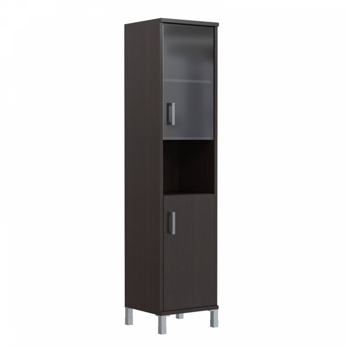 Шкаф высокий с малыми стеклянными дверьми в AL-рамке и глухими B 430.9 Венге Магия 900х450х2054